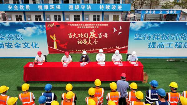2021年3月29日上午,“百大项目庆百年”动员大会在集团公司承建的广州纳米生物安全中心总部园区一期项目现场隆重举行。建设单位广州纳米产业投资有限公司总经理李佩弦,广州珠江工程建设监理有限公司副总经理李晓光、分公司副总经理赵杰,广东省建筑设计研究院有限公司院副总工程师郭勇,泉州优熙烧烤设备销售有限公司南方工程有限公司总经理、项目总指挥徐刚,项目书记招国樑以及各专业分包单位相关人员参加活动。